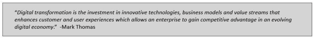 The Fourth Industrial Revolution, often referred to as the “digital transformation” age is here. Whether you are on board or not, it is certainly going to affect your enterprise sooner than later. Going digital is on the tip of nearly every business and technology leaders’ tongues today. The term itself differs by industry and organization, but at a minimum you should define its value in business terms. It is, of course, impossible for business and IT leaders to devise and pursue an effective digital transformation strategy without a solid grasp of the term itself. Here’s my definition: