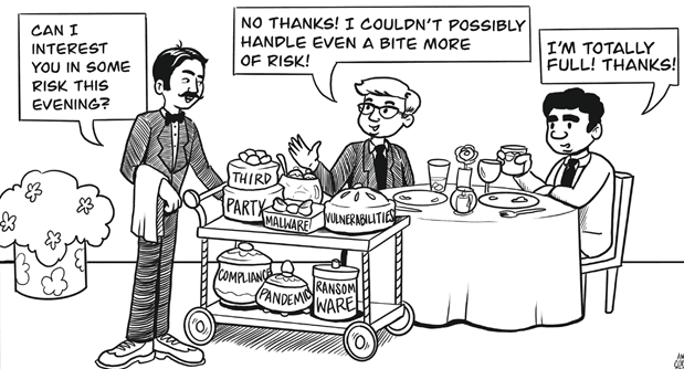 Ed’s top tip: Take the time to ask and answer the hard risk appetite and tolerance questions, for the pessimists this means asking “How much am I willing to lose?” for the optimists “How much am I willing to bet that we’ll succeed?” Whether you’re a pessimist or optimist, ask the question until you get a sufficient answer. Too often I see organizations that don’t effectively communicate the risk appetite and this results in a lot of time and effort spent on attempting to engineer for solutions that otherwise should be accepted and not focusing efforts where they really should be – those risks which exceed the defined risk appetite.